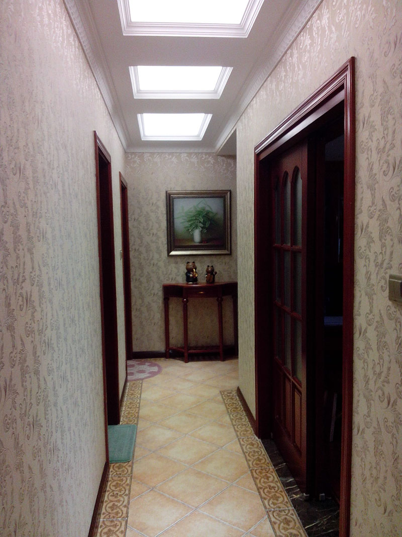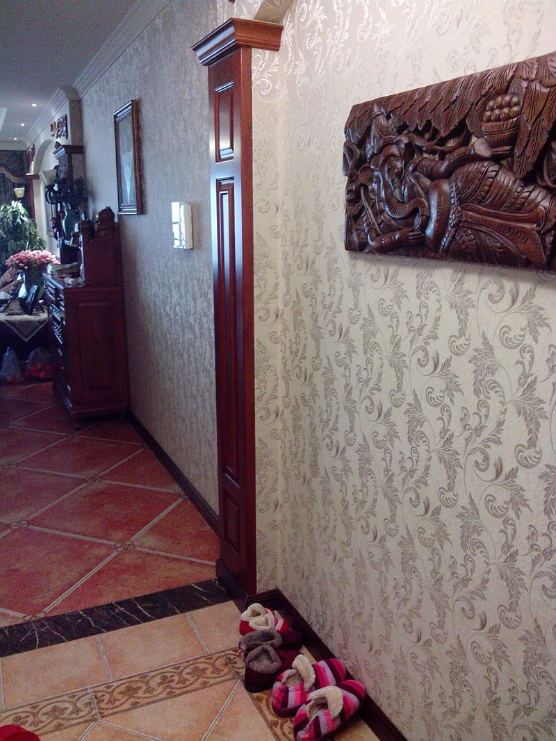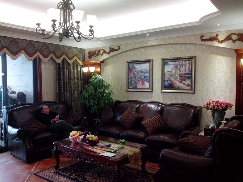 【基本情況】:業(yè)主一家五口人三代同堂,業(yè)主和她父親都是美院畢業(yè)的,所以在設計風格上有自己獨特的見解想法。木質(zhì)紋理裝飾、地面仿古磚,營造出美式的可以在不同角度產(chǎn)生不同質(zhì)感。同時也反映在裝修上對各種仿古墻地磚、墻紙的偏愛和各種仿舊工藝的追求。多以布面墻體為主、皮質(zhì)家具。